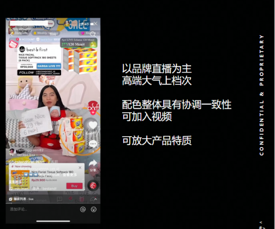 PONGO代运营的京东印尼官方账号@jd_id曾被TikTok官方作为直播布景的案例重点介绍。PONGO直播间布景符合品牌主题颜色和调性,重点产品陈列在屏幕中央,足够醒目能够有效吸引目标消费者。PONGO在组品方面有丰富的经验,以用户的需求出发,搭配相关联的产品,能够有效刺激用户购买套装,提升GMV。